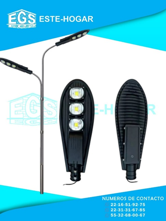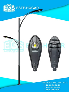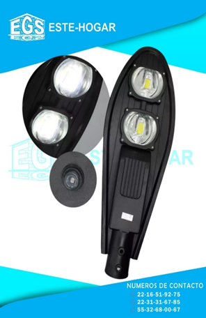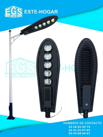 Flujo luminoso: 10,000LM - Alto: 620 mm - Ancho: 450 mm - Entrada a poste: 55mm-75mm - Instalación recomendada: 4 a 12 mts