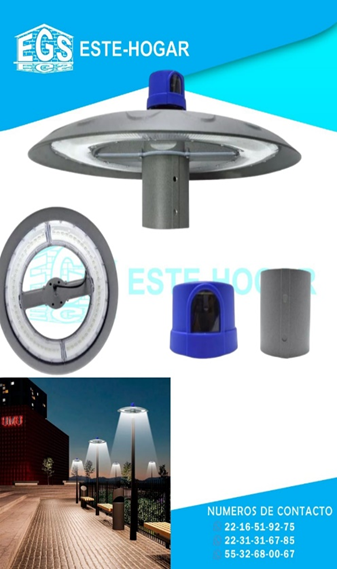 - Voltaje de entrada:85-265V - 60Hz - Medidas: Alto: 200 mm (diámetro) 460mm X 460mm - Entrada a poste: 55mm-75mm