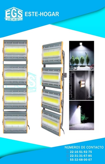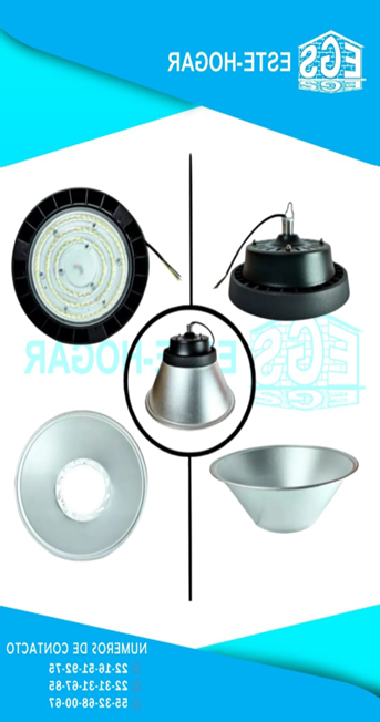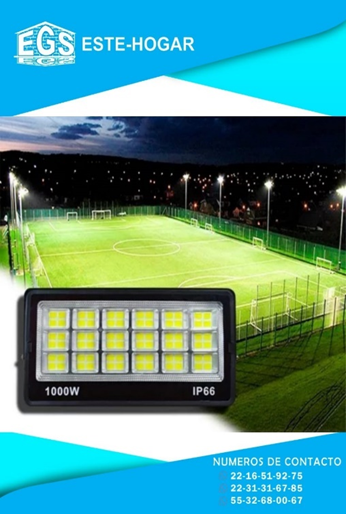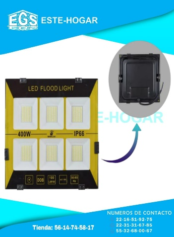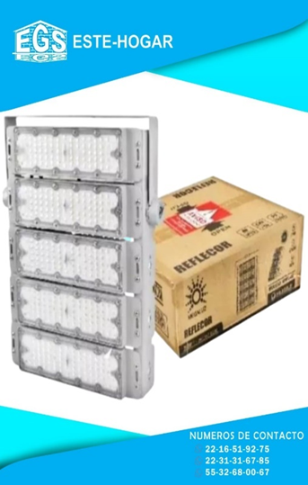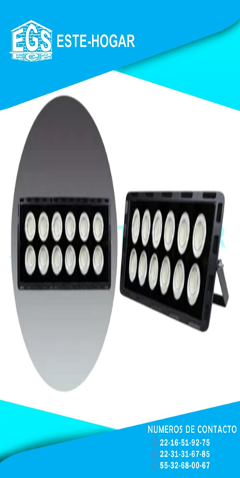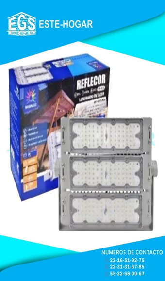 FLUJO LUMINOSO: 25000lm -50,000 HORAS DE VIDA -TENSION: 85V-265V -MEDIDAS DEL REFLECTOR : 46 CM X 36CM