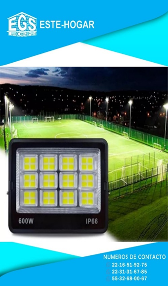 Reflector: 600w Alto: 36 cm Ancho: 69 cm Flujo Luminoso: 54000LM Voltaje: 85-265v
