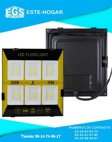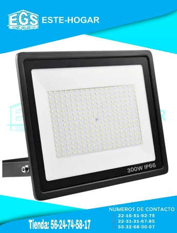 POWER : 300W. +VOLTAGE: 110-220V +TEMPERATURA LUZ: 6500K (FRÍA). +DURACIÓN: 50,000 HRS APROX. +MEDIDAS: 38cm x 28cm
