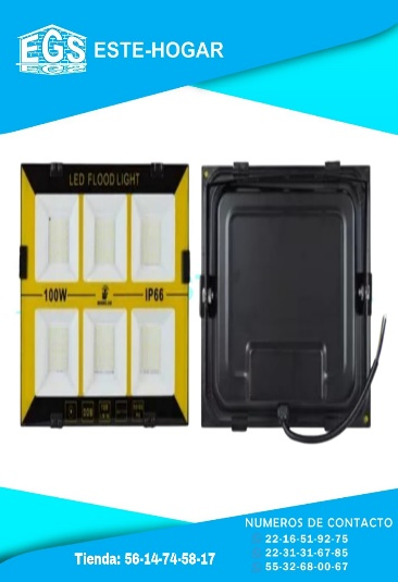 LED: 100 W Flujo Luminoso: 9,000 Temperatura del color: 6000 - 6500 k Tensión: AC165-265V Frecuencia: 50/60 Hz. -Medidas: 27CM X 21CM X 3.5CM