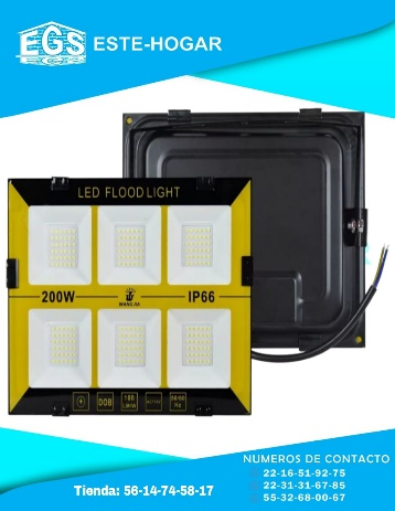 Reflector: 200w Alto: 20 cm Ancho: 34 cm Flujo Luminoso: 18000 lm Temperatura de Color: 6500k Voltaje: 85-265v